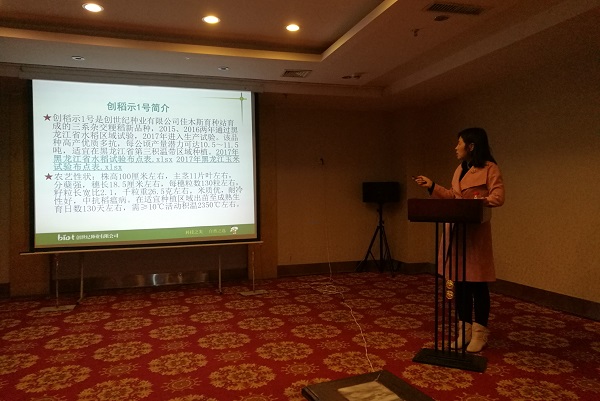 好山好水好环境、佳人佳境佳木斯!2017年4月6日,我司在素有“中国北方水稻之都”的佳木斯市成功召开了“创稻示1号布点示范播种动员会”。会议由黑龙江营销中心组织,公司总裁杨雅生、黑龙江营销中心副总经理韩宗城、水稻育种中心副主任、佳木斯育种站站长李海慧及黑龙江省西部地区、绥化地区、哈尔滨周边地区、佳木斯地区、鸡西地区等的经销商和种植户30余人参会;佳木斯市种子管理处原副处长刘国法应邀出席了会议。
