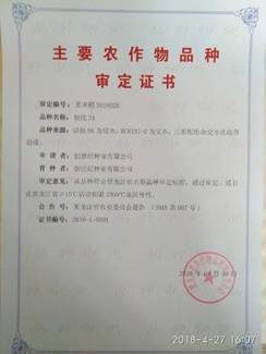 近日,从佳木斯育种站传来特大喜讯:我司寒地杂交粳稻育种研究取得重大突破性成果!继研究选育的不育系“创9A”通过黑龙江省技术鉴定后,选育的寒地杂交粳稻新组合“创优31”于2018年4月25日通过了黑龙江省品种审定(审定编号:黑审稻2018026)。这是我国审定的首个寒地杂交粳稻新品种,填补了杂交水稻应用于寒地的历史空白;标志着我司乃至我国的寒地杂交粳稻技术在国际领先,圆了几代人的“寒地杂交粳稻种业梦”!