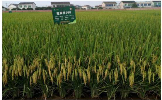 旺两优958具有株型理想、抗病抗逆性性强、丰产稳产性好、耐肥抗倒、米质优良、熟期落色好、结实率高等特点,适合在长江上、中、下游全流域作一季中稻种植,号称“全能稻”,是袁创公司超级稻育种技术与现代分子育种技术有机结合、花多年心血倾力打造的集大穗、多穗、高产、优质、抗病、抗高温、抗倒等众多优点于一体的创新型超级稻新品种,有效解决了大穗与多穗、多穗与抗倒、高产与抗病、抗高温与优质等多对矛盾,既可作超级稻超高产栽培,又是一个难能可贵的稳产型优质新品种。