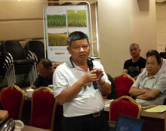 揭主编向大家推荐:“去年晚造我就特别关注Y两优911这个品种,大家都知道2017年度对于华南稻作区来说是个大灾之年,矮缩病、跗线螨、白叶枯等病虫害发生严重。在这么恶劣的大环境下,去年晚造Y两优911的田间表现却依然非常好。今天观摩了140亩连片种植的Y两优911表现之后,我认为这个品种很有市场潜力。该品种的株叶形态、穗型、结实率和后期落色等方面都非常好,Y两优911可以说是Y系里的一株清秀。我相信,好的品种+好的推广,Y两优911最终一定能得到广大老百姓的认可!”