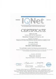 自2017年7月起,我司全面推行ISO 9001:2015质量管理体系。通过公司全体员工一年来的共同努力,在国家权威认证机构---方圆标志认证集团组织的审核认证中,确认我司质量管理体系运行符合ISO 9001:2015质量体系的标准要求,于2018年8月24日向我司正式颁发了ISO 9001:2015质量管理体系认证证书。