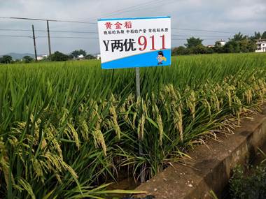 Y两优911具有“晚稻的熟期、中稻的产量、常规稻米质”等优点,人称“黄金稻”,具有高产、抗倒、优质、抗病等综合优良特性。株型集散适中、分蘖力强、穗大粒多、高产稳产、米质优良、抗倒伏能力特强、适合机械化栽培等特点突出。2015年在浏阳市永安镇作双季晚稻连片示范,经浏阳市农业局组织湖南农业大学、国家杂交水稻工程技术研究中心等专家现场测产验收,平均亩产802.4公斤,比同期湖南省晚稻单产429.67公斤高产300多公斤。在2017年湖南持续高温影响下常德市安乡县Y两优911再生稻直播头季测产平均亩产仍达到856.25公斤,2018年已通过湖南、广东审定,2019年将通过长江中下游国审、湖北审定。米质优良,整精米率71.2%,商品性极好,全部米质指标达到国家《优质稻谷》标准2级,是油后、麦后直播稻、虾稻、再生稻首选品种!
