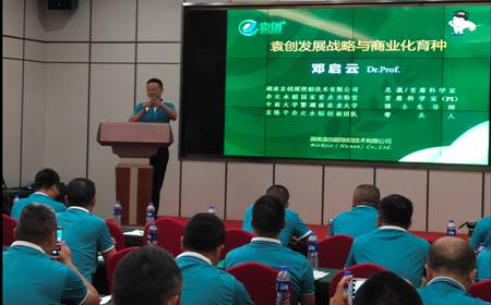 首先,邓老师代表袁创公司向拨冗参会的合作伙伴表示热烈欢迎和衷心感谢,接着邓老师作了题为《袁创战略发展与商业化育种》的主题报告。他指出,袁创公司研发团队针对当前市场需求,分子生物技术与传统常规育种相结合,选育出的新品种在品质、抗逆性、抗病性以及抗倒性等方面均取得突破性进展,Y两优957就是这样的典型代表,具有显著的“三高”特点——“超高产、高抗倒、高档米”。最后,邓老师希望广大经销售朋友加大工作力度,积极推广好Y两优957这一难能可贵的优质超级稻新品种,为农民造福,为我国粮食安全做出贡献。大家纷纷表示,将以Y两优957为纽带,继续深化与袁创公司的合作,互利共赢,携手稳步度过“种业寒冬”!