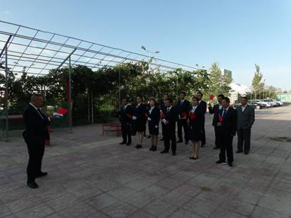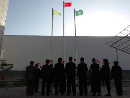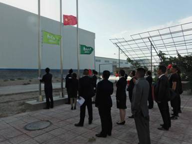 上午十时,库尔勒创世纪全体党员和员工统一身着公司工装,由库尔勒创世纪党支部组织委员、新疆生产中心副总经理刘銮峰主持,在办公楼前广场举行升国旗仪式,在庄严的国歌声中,国旗手陈福经理、李瑞龙经理、护旗手李凤霞、伍晓双将中华人民共和国国旗和创世纪种业有限公司司旗缓缓升起,高高飘扬在空中!随后,全员同声合唱《我爱你中国》、《我和我的祖国》、《今天是你的生日》等红歌和创世纪公司司歌《创造世纪辉煌》,气势宏伟的升旗仪式、高亢嘹亮的阵阵歌声振奋着我们在场每个人的赤子之心,也将我们紧紧的凝聚到一起。