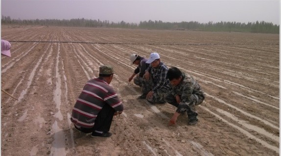 遭受强冷空气的影响,4月23至24日库尔勒及周边地区遭遇10年不遇强沙尘暴,最高风力达10级以上,白昼瞬间如黑夜,气温也随之下降。直到5月5日浮尘仍未退去,空气中始终弥漫着浓烈的沙土味道。这样的天气给基地员工的生活带来了巨大的挑战,在风沙最强的23日下午,他们被困在地里数小时,只能依靠一个小土屋躲避风沙。待艰难地回到几公里外的住地后,发现屋内吃的、喝的、睡的都已裹上了厚厚的尘土。在此环境下大家首先考虑到的是恶劣天气对棉花生长的损害,一定会给公司的良种繁育和繁种农户造成重大的损失,如何采取补救措施成为他们急待解决的问题。不出意料,大风过后繁种田内地膜和滴管漫天飞舞,刚出膜的棉芽因为气温过低、风沙过大出现大面积的死亡,普惠基地受灾尤为严重。我司驻基地人员在苌群庆副总经理的带领下成立了应急小分队,进行灾后田间调查,摸清受灾情况,并根据受灾程度指导农户采取相应的措施,进行重新播种,力争将本次灾害造成的损失降到最低程度。因4月28日晚又发生强沙尘天气,导致重新播种的农户再次受损,不得不进行新一轮的补救,截止到5月5日普惠基地受灾农户已基本完成重播工作。