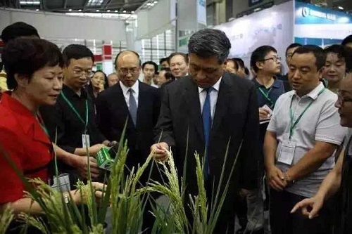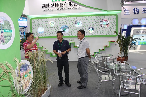 在9月23日的生物展开幕式前,广东省省委副书记、深圳市市委书记马兴瑞、深圳市市长许勤等领导在相关部门负责人的陪同下莅临展会参观指导,在我司展位上,黄涛副总裁向马书记一行简要介绍了我司亩产超千公斤、刷新世界高产纪录的超级稻新品种“Y两优900”、处于世界领先水平的F型三系杂交小麦、攻克世界难题的寒地、热带杂交粳稻育种研究及第二代抗虫棉、耐寒、耐旱、耐盐碱、优质等植物转基因研究成果;马书记对我司在农业科研育种上所取得的显著成效给予了充分地肯定,并就杂交粳稻育种技术研究与黄副总裁、崔主任进行了沟通与交流。他鼓励创世纪要进一步加强农业生物技术与育种研究,为促进我国现代农业产业发展多做贡献。