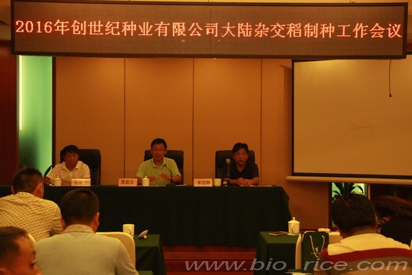 2016年8月4日,“2016年创世纪种业有限公司大陆杂交稻制种工作会议”在长沙广圣大酒店成功举行;会议由田间种植鉴定现场观摩会、杂交水稻制种技术培训会、优秀生产商表彰大会三部分组成。来自广东、福建、湖南等地30余位生产商代表和公司相关部门负责人参加了本次会议;袁创公司常务董事兼首席科学家邓启云、总经理宋运钟出席了本次会议。